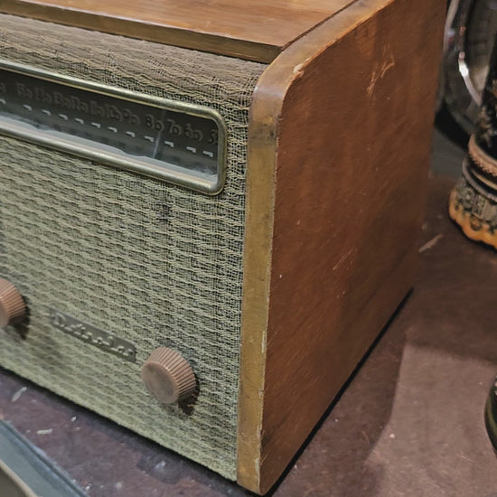 Whether styled on a shelf, sideboard, or studio desk, this radio brings quiet nostalgia into any space. It works beautifully as a display piece, a period prop, or a collector’s item for those who appreciate early broadcast history and utilitarian design. The compact size makes it easy to place, while the craftsmanship and materials give it visual weight well beyond its footprint.
