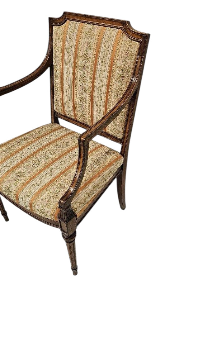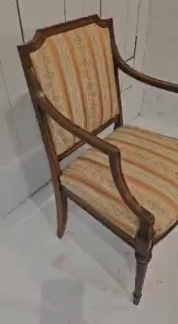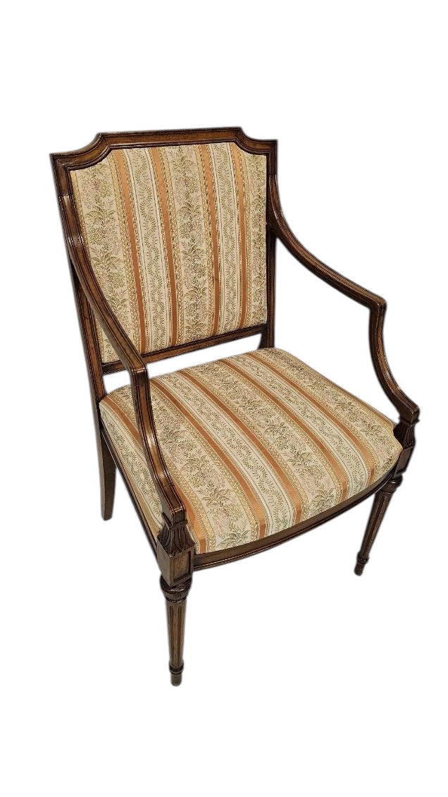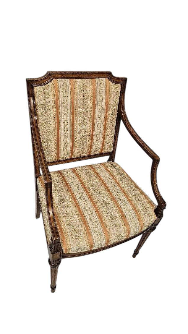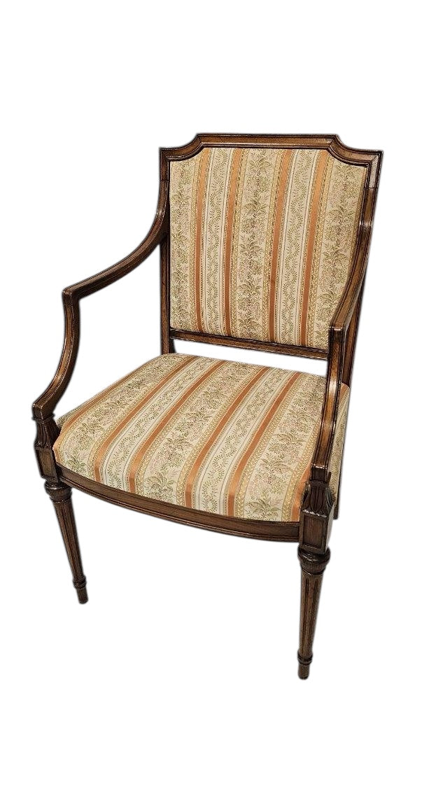 Wooden Armchair – Side Chair with Yellow Floral Striped Upholstery